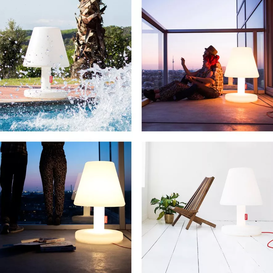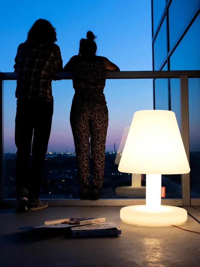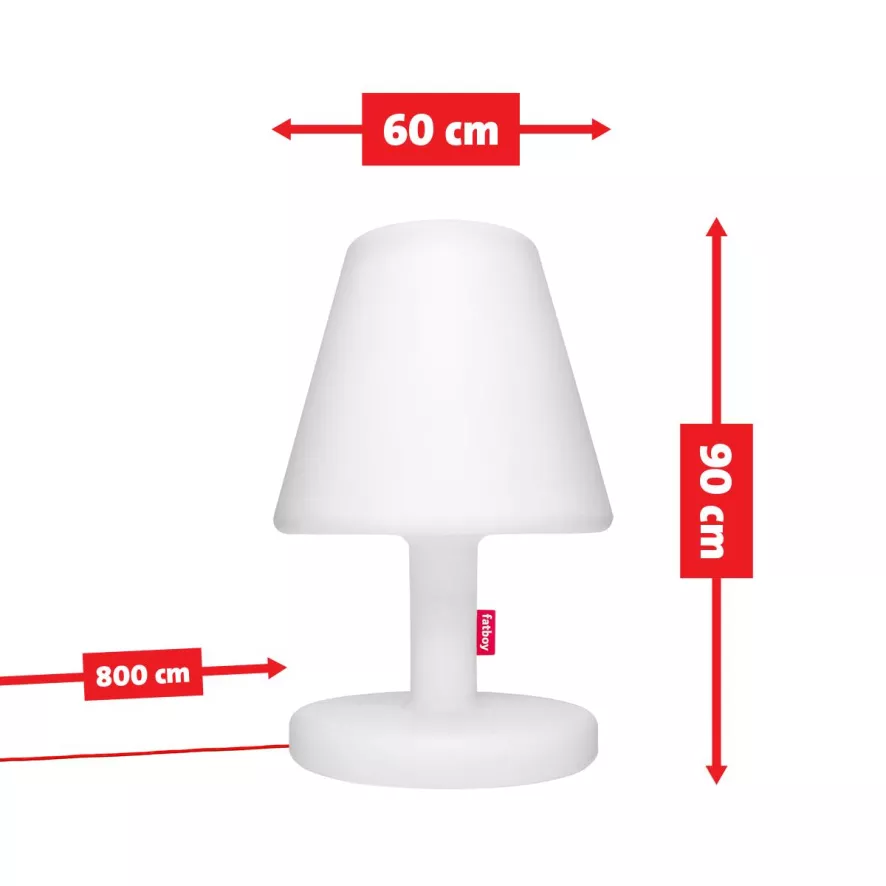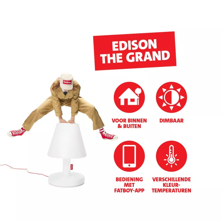 De Fatboy Edison the Grand lamp is 90 centimeter hoog, met een diameter van 60 centimeter. De lamp is gemaakt van wit kunststof dat doorschijnend blijkt wanneer je het licht aandoet. Dankzij het stevige materiaal is de lamp geschikt als binnenlamp en buitenlamp. De lamp heeft drie verschillende lichtstanden. Mocht je de Fatboy Edison the Grand lamp willen schoonmaken dan is dat erg eenvoudig te doen met lauwwarm water en neutrale zeep. De lamp kan buiten gebruikt worden, maar bij regen naar binnen halen.