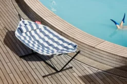 Maak je Headdemock hangmat compleet met dit Headdemock Superb hoofdkussen. Het kussen is 70 centimeter breed, 30 centimeter hoog en 15 centimeter dik. Het kussen weegt 0,7 kilogram en is gemakkelijk te bevestigen aan de hangmat. De vulling is gemaakt van polypropyleen. En de buitenhoef is van Sunbrella acryl bij de kleuren desert, silver grey, anthracite, nature grey en steel blue. En bestaat voor 100% uit Olefin outdoor stof bij de kleuren stripe red, thunder grey, stripe ocean blue, rock grey, mist en seafoam. Beide stoffen zijn water- en vuilafstotend, uv bestendig, vlekbestendig en waterbestendig.