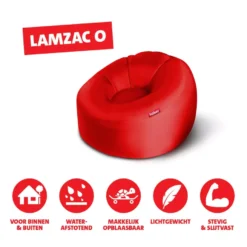 De Fatboy Lamzac O zitzak is zowel binnen als buiten te gebruiken. Hij is makkelijk op te blazen. De zitzak is 110 centimeter hoog, 62 centimeter breed en 103 centimeter diep. De Fatboy Lamzac O zitzak is gemaakt van nylon. Deze zitzak is verkrijgbaar in verschillende toffe kleuren. Bewaar de Lamzac binnen na gebruik.