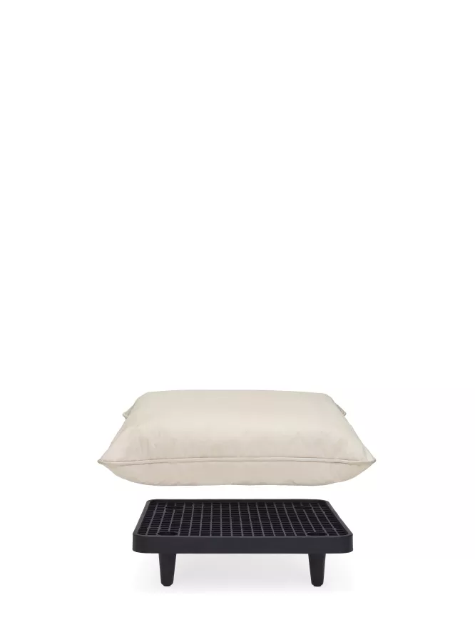 De Paletti outdoor 3-zits loungebank van Fatboy heeft een basis van acryl, een vulling van polyether hybride schuim en afgesneden schuim (gemixt en gerecycled). De bank is voorzien van een Axalta coating die de bank water, vuil en vlek-bestendig maakt. De hoezen zijn gemaakt van een Sunbrella stof die de bank UV-bestendig maakt. De vulling is voorzien van een PU-coating. De bank is zowel binnen als buiten te gebruiken.