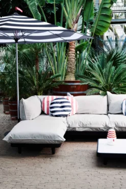 De Paletti hocker van Fatboy is 90 centimeter breed, 90 centimeter diep en 45 centimeter hoog. De hoekbank weegt 17,85 kilogram. De Paletti bank is modulair en bestaat uit allerlei losse delen die goed met elkaar te combineren zijn. Zo stel je zelf je bank samen. De hocker heeft een Sunbrella natté stof (100% acryl) en een vulling van polyester hybride schuim. Deze materialen zijn zoveel mogelijk gerecycled. De hocker heeft een PU-coating op de binnenkant en een water- en vuilafstotende coating op de buitenstof. De hocker is ook UV-bestendig en daarom geschikt voor binnen- en buitengebruik. De hoezen kan je wassen op 30 of 40 graden.