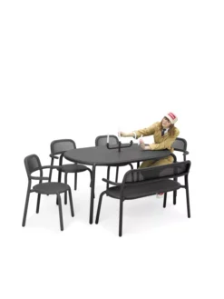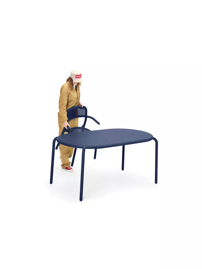 De Toni Tavolo tuintafel van Fatboy heeft een lengte van 160 centimeter, een breedte van 90 centimeter en een hoogte van 76 centimeter. De tafel is gemaakt van aluminium en weegt 16,3 kilogram. De tafel is geschikt voor binnen- en buitenshuis gebruik. De tafel is UV-bestendig en verkrijgbaar in verschillende kleuren. Fatboy raadt aan het product alleen te reinigen met een droge of natte doek. De Toni serie is ontworpen door Erik Stehmann voor Fatboy. Maak je tuintafel helemaal af met de bijpassende Toni tuinstoelen!