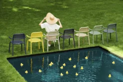 De Toni stoel met armleuning van Fatboy is 59,5 centimeter breed, 55 centimeter diep en 80,5 centimeter hoog. De zithoogte is 46,5 centimeter, de zitbreedte is 44 centimeter en de zithoogte is 46,5 centimeter. De hoogte van de armleuning is 64,5 centimeter. De stoel is gemaakt van aluminium en is geschikt voor binnen en buitengebruik. De stoel is stapelbaar, lichtgewicht, UV-bestendig en is verkrijgbaar in verschillende kleuren. Kijk ook eens bij de Toni bistro tafel, de Toni eettafel en de Toni stoel.